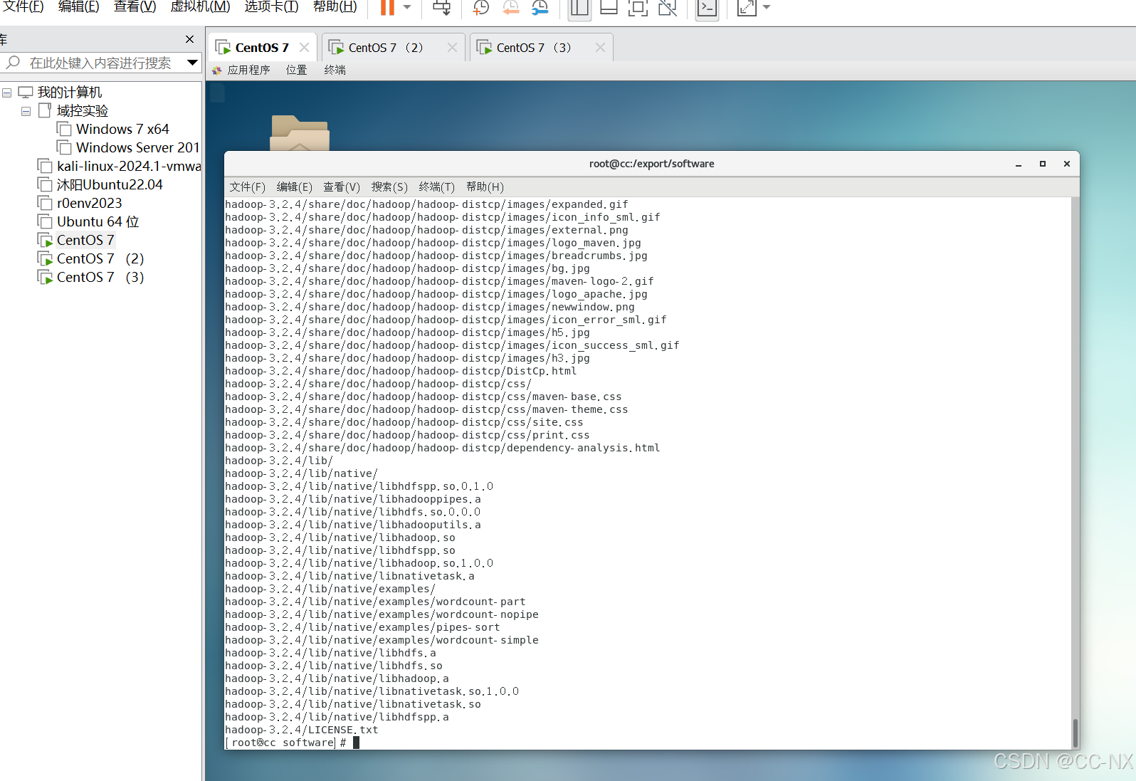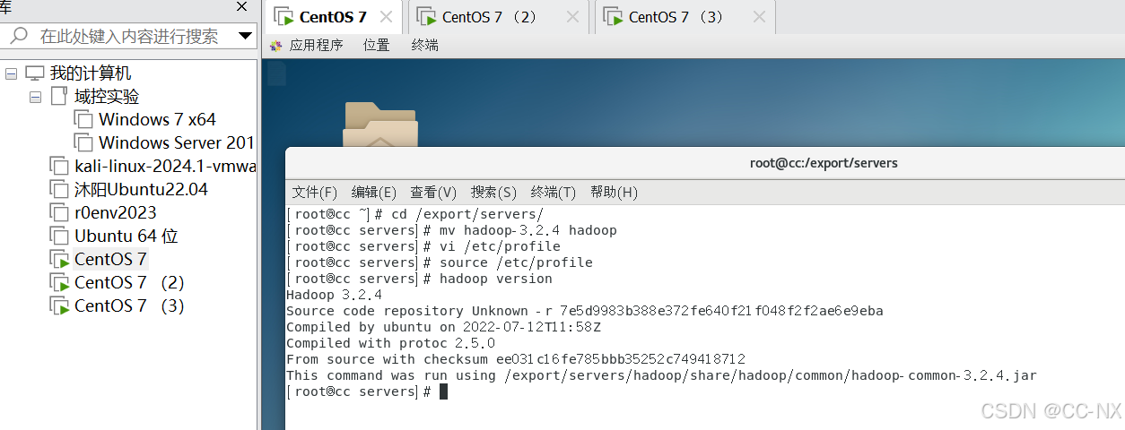 输入命令tar -zxvf hadoop-3.2.4.tar.gz -C /export/servers/解压安装包