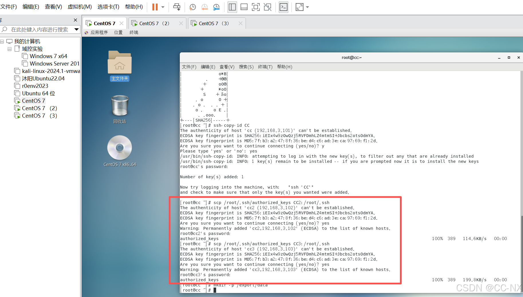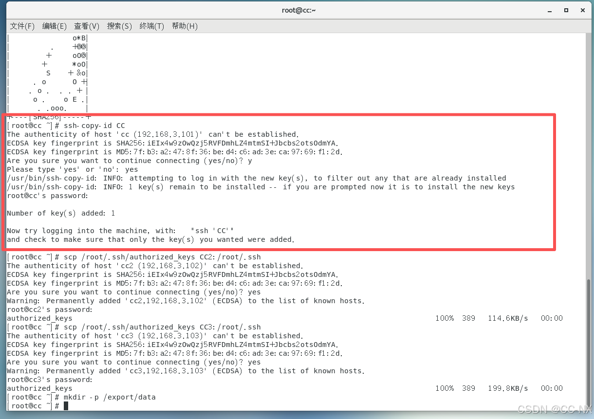 输入命令:ssh-copy-id CC