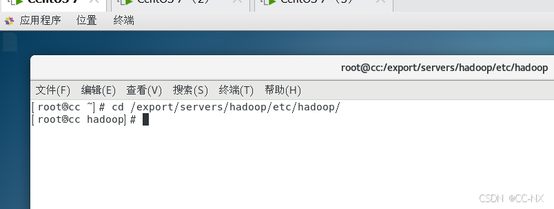 修改Hadoop的配置文件必须进入到hadoop安装路径下etc文件夹中的hadoop下进行编写,切换到这个目录下,使用命令:cd /export/servers/hadoop/etc/hadoop/