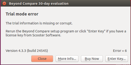 3.打开Beyond Conpare,弹出Trial Mode Error!弹窗