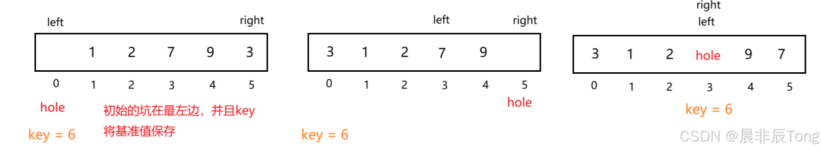 - [3.2 快排核心构成:寻找key的算法之"挖坑法"](#3.2 快排核心构成:寻找key的算法之“挖坑法”)
