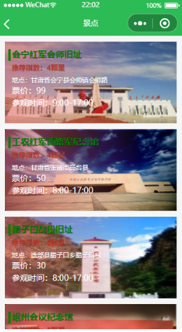 3.景点列表:在该模块部分中,用户可以在此对红色旅游景点进行查看。点击首页的旅游景点之后,用户可以看到该网站上所有红色旅游景点的具体详细信息,供用户快速便捷的搜索到自己想要的旅游景点信息。