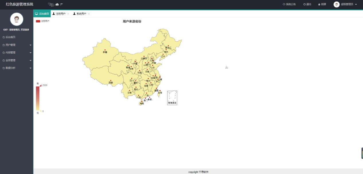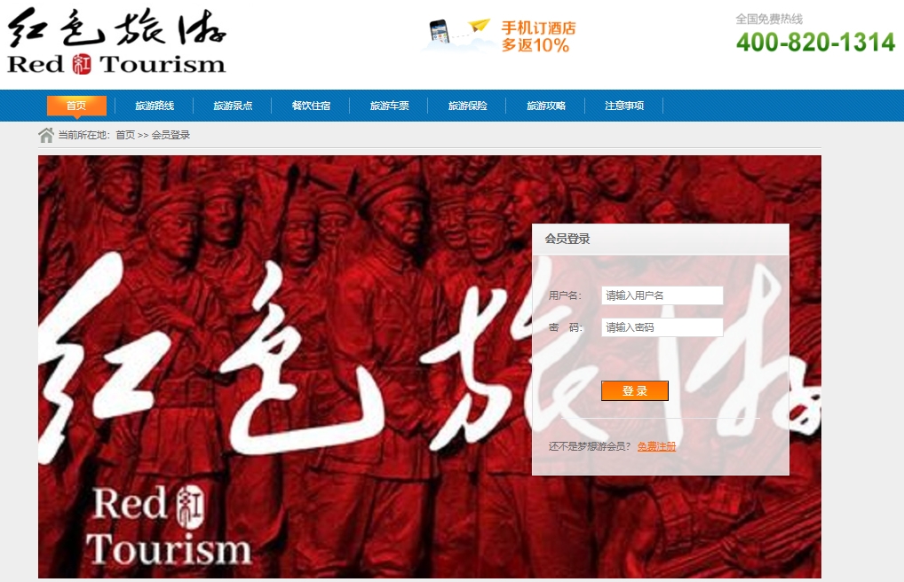 该系统可以实现游客查询红色旅游景点、路线信息、路线预定、酒店信息、旅游保险及攻略。系统管理员对系统用户、订单业务、页面展示内容进行管理,并依据数据分析结果及时调整管理策略。系统工作稳定、操作简单、维护方便。能够实现在线的管理和预定操作,减少管理人工时间成本支出,提高旅游管理效率,方便旅游业的发展。