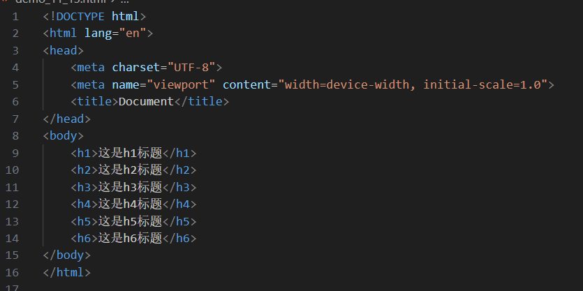 ++从h1到h6,数字越大,则字体越小并且越细。++