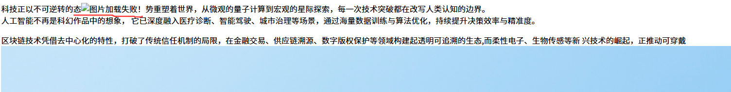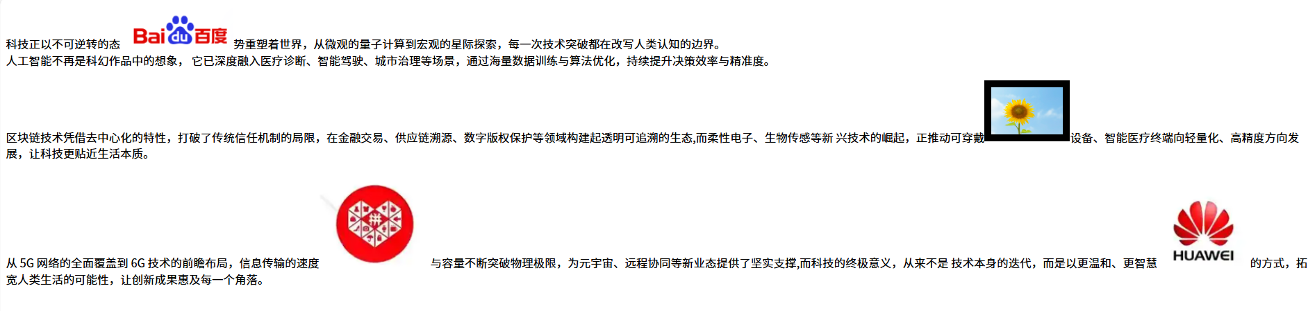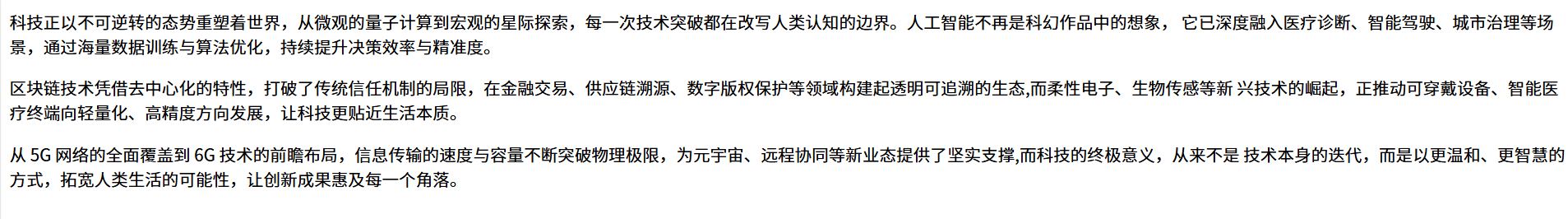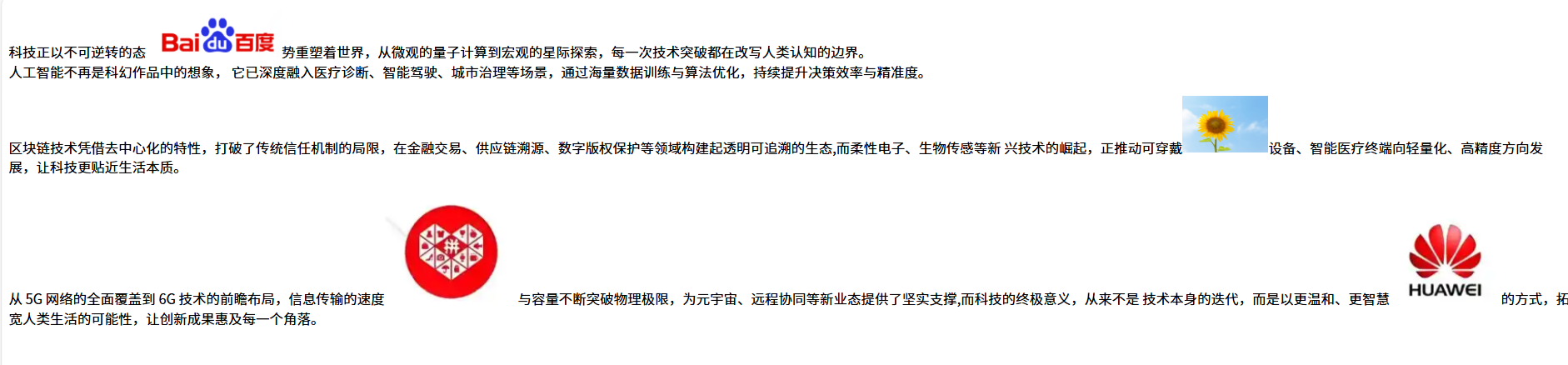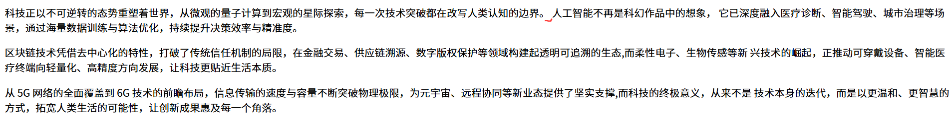 在浏览器中,"人工智能"之后内容,则开始换行!