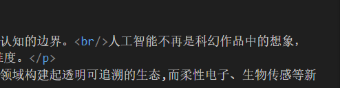 在要换行之前写 <br/>,若想在上段内容的"人工智能"开始换行,则: