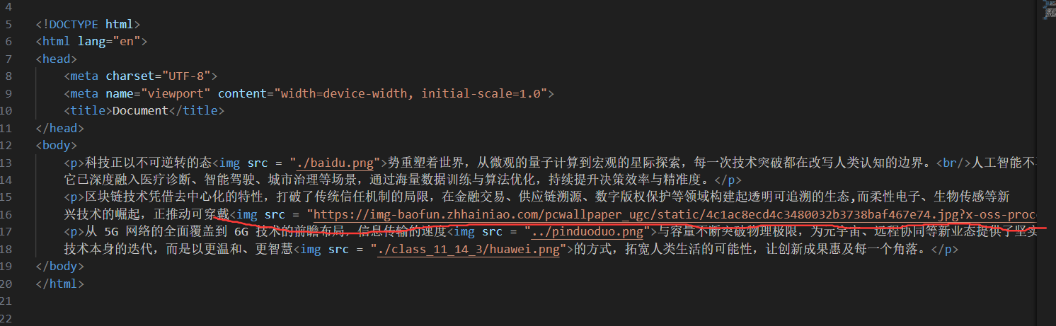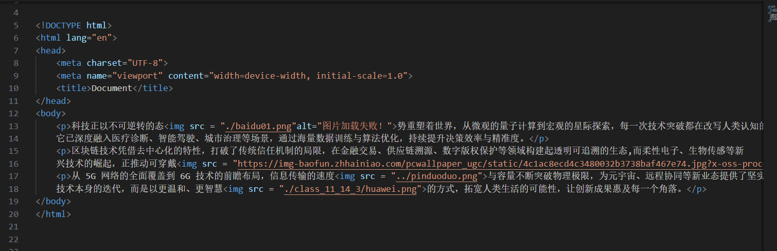 假如我将图12中的13行的<img src = "baidu.png">故意改错为<img src = "baidu01.png">,则结果如下: