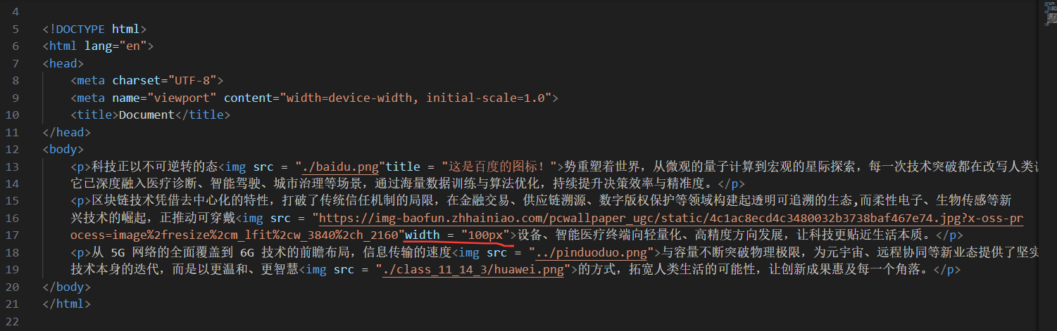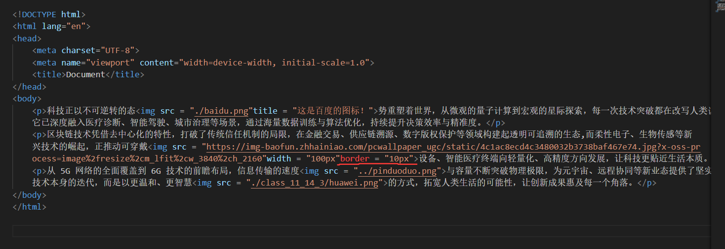 width/height属性:作用是控制宽度高度,高度和宽度一般改一个就行,另外一个会等比例缩放,否则就会图片失衡。