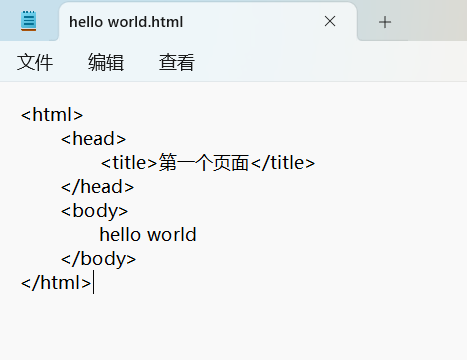 前提:记事本上编写代码,编写好之后ctrl+s保存,注意以.html为结尾保存该文件。将其打开后的这个页面,你会发现并没有标签(如下图1),只有字符串hello world,那么这样就不是一个标准的html页面: