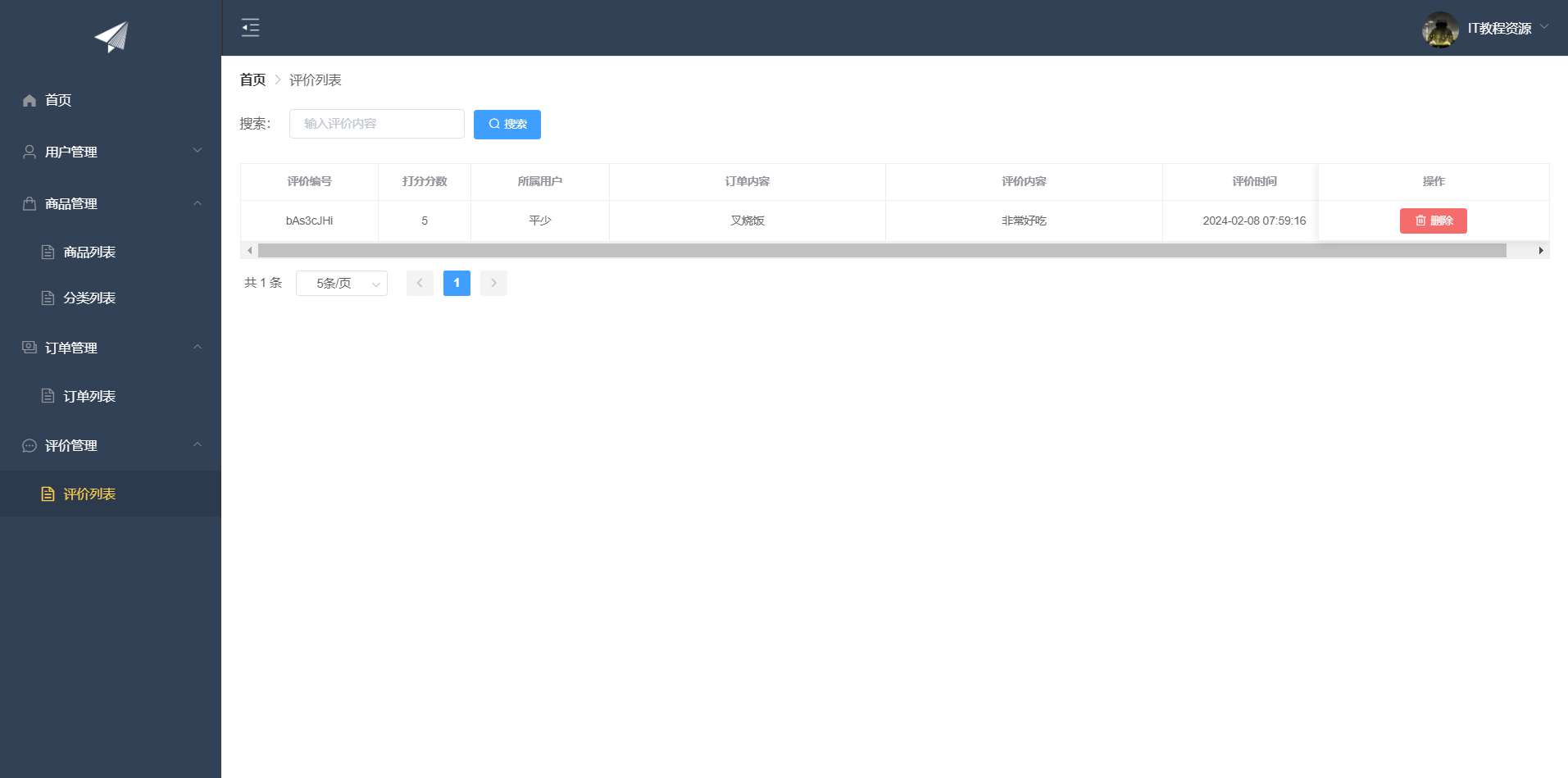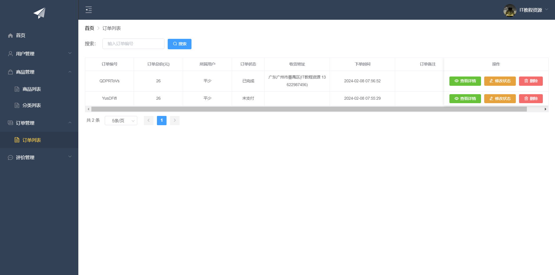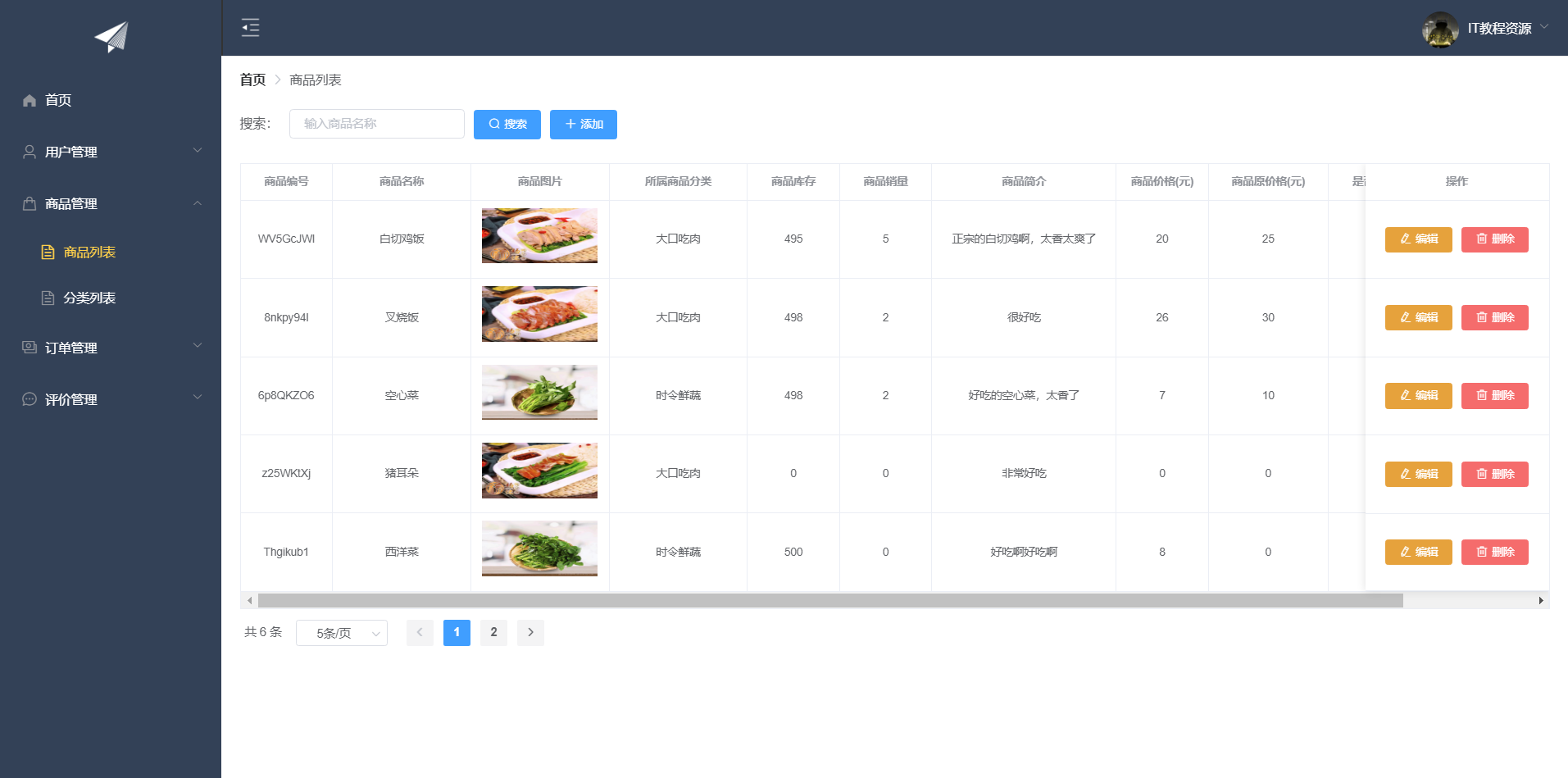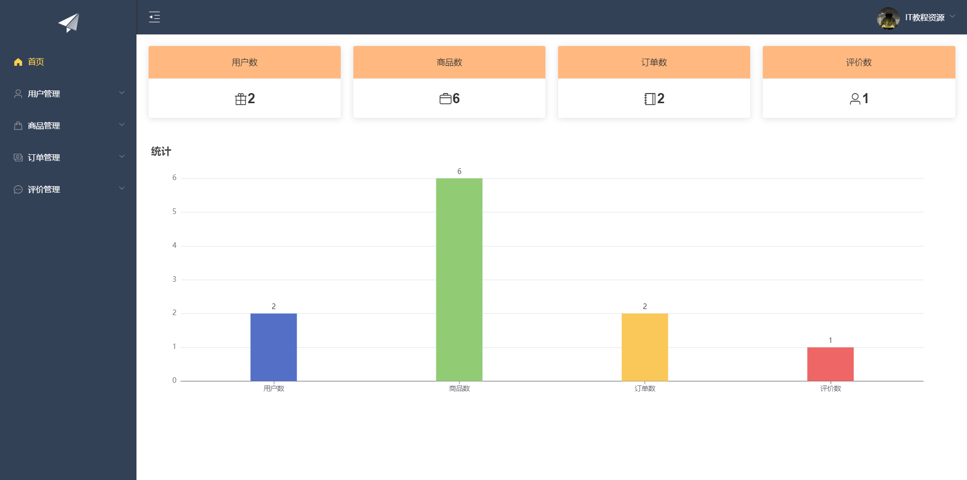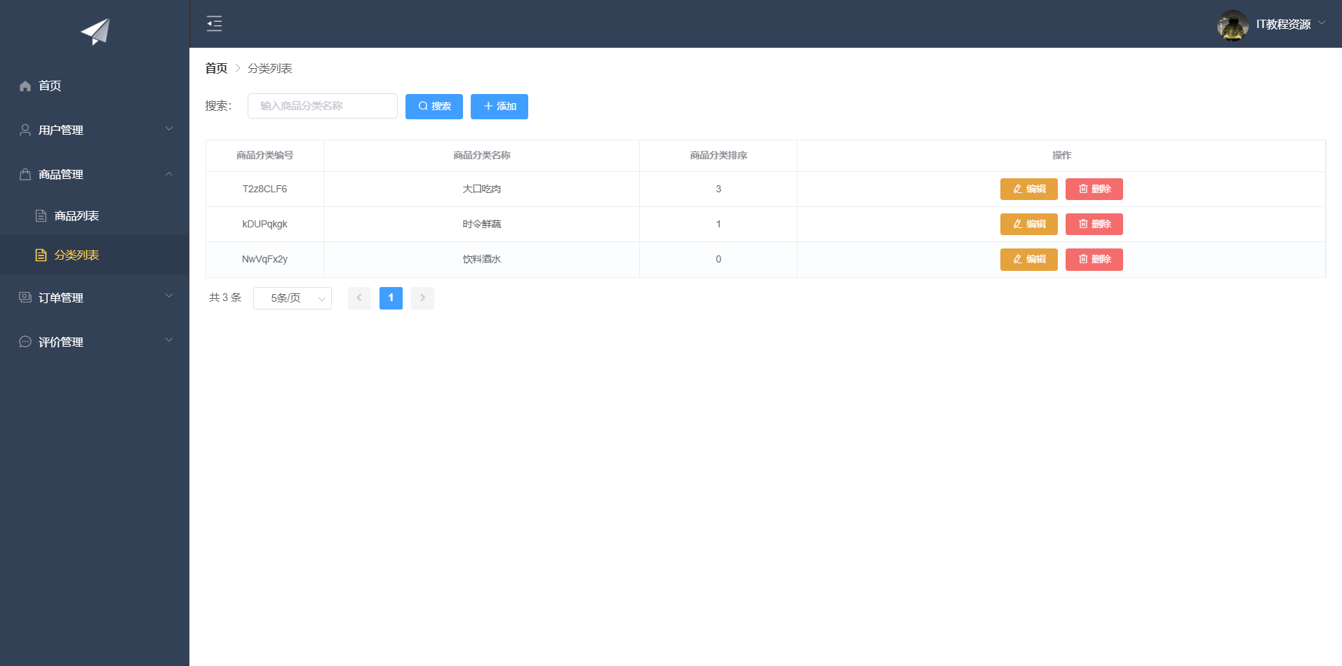登录、首页、用户管理、商品管理(商品列表、分类列表)、订单列表、评论管理、退出登录等等功能