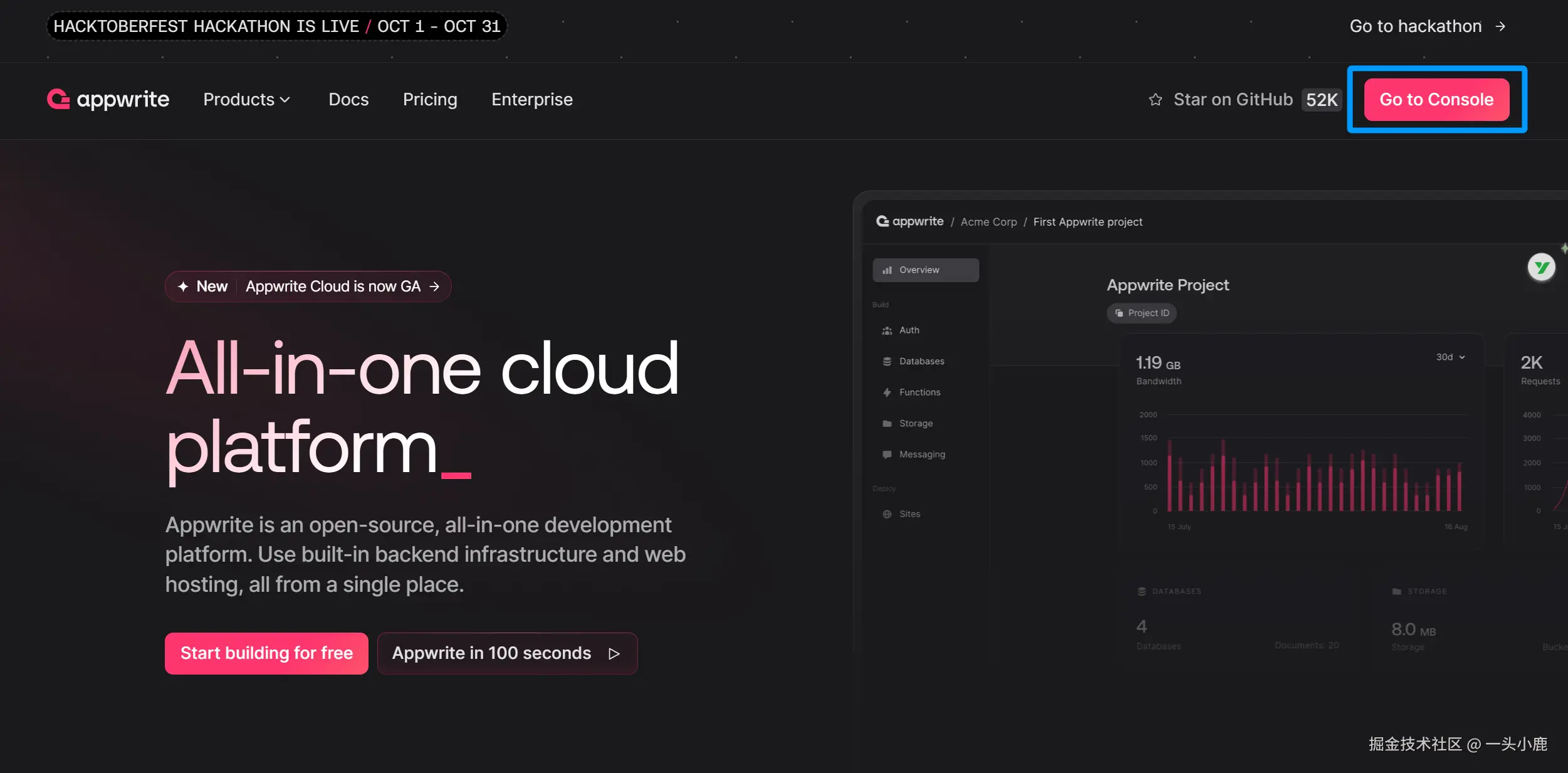关于Appwrite,可以这样介绍:Appwrite 是一个开箱即用的后端服务平台,将后端复杂的功能模块化,让开发者不用手写后端代码,在网页上就可以实现账号、数据库、云函数、开发日志等功能。