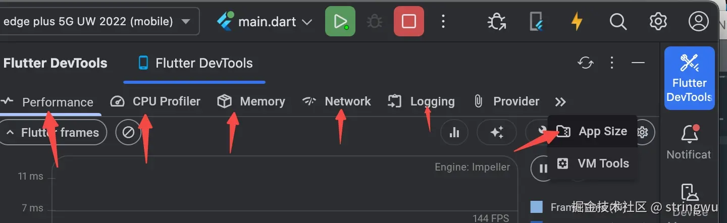 性能调优与可视化调试是每个 Flutter 工程师成长的必修课,而 DevTools 是 Flutter 官方提供的一套用于 调试、性能分析与优化 Flutter 应用 的可视化工具, 它可以通过Dart VM Service 与应用运行时通信,可以实时读取: