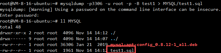 备份:# mysqldump -P3306 -u root -p 密码 -B 数据库名 > 数据库备份存储的文件路径