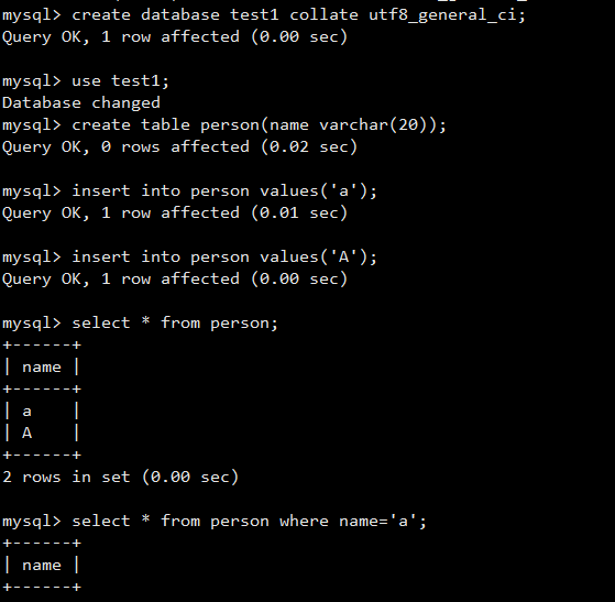 创建一个数据库,校验规则使用utf8_ general_ ci[不区分大小写]