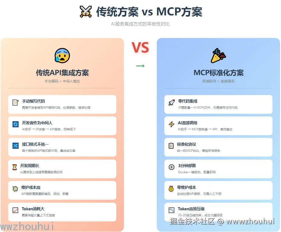 在AI辅助开发工具快速发展的今天,如何让AI助手直接调用外部服务成为了开发者关注的焦点。传统的方式往往需要开发者手动编写大量的API调用代码,不同服务的接口格式又各不相同,导致集成成本居高不下。更关键的是,像Claude、ChatGPT这样的AI助手无法直接访问外部资源,只能通过开发者作为"中间人"来完成任务,效率大打折扣。