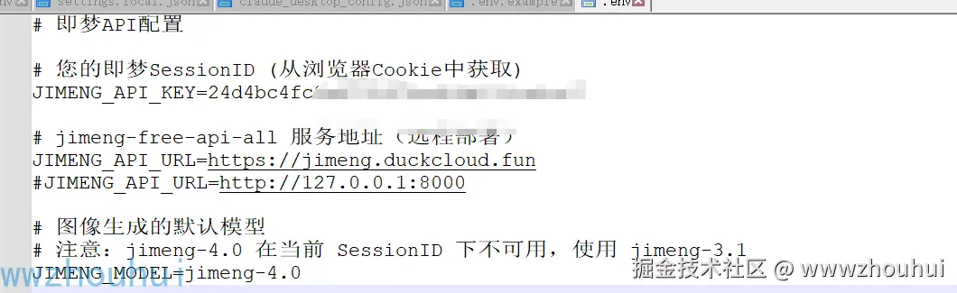 注意 :JIMENG_API_KEY 就是前面网页版本即梦 cookies