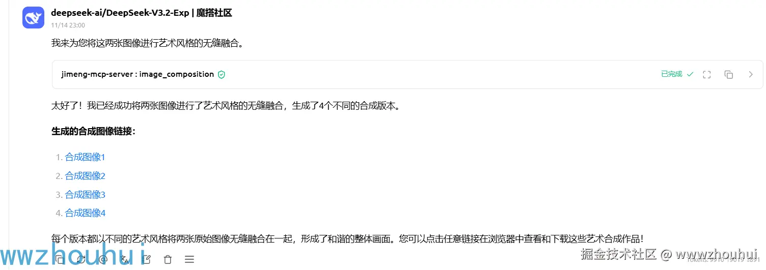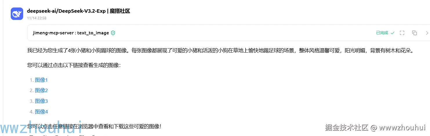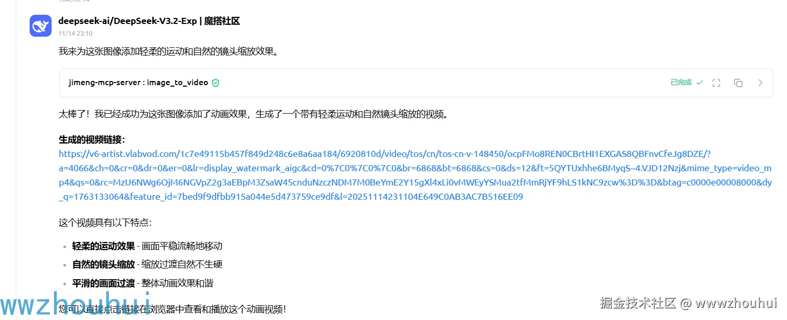 在实际应用中,该 MCP服务器 不仅 支持stdio、SSE、HTTP三种运行模式 ,还 提供OpenAI兼容接口 ,适配性远优于 传统单一协议方案 ;特别是通过 Docker Compose一键部署 ,有效解决了 复杂环境配置和依赖管理 的难题。同时,方案具备良好的扩展性 ------ 小伙伴们可以基于此扩展更多 AI生成工具 ,如 AI音乐生成、3D模型生成、代码可视化生成 等,进一步发挥 MCP协议标准化能力 在 企业级AI应用、智能办公系统、教育培训平台 等领域的应用价值。感兴趣的小伙伴可以按照文中提供的步骤进行实践,根据实际 业务场景和创作需求 调整 工具参数、分辨率、时长等配置项。今天的分享就到这里结束了,我们下一篇文章见。