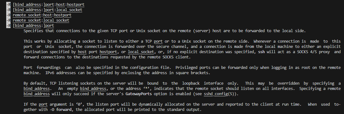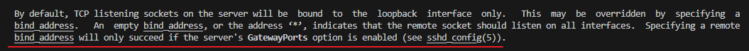 这里最关键的是后面这句话,只有当服务器的 sshd 配置中启用了 GatewayPorts,指定的 bind_address(比如 0.0.0.0: 或 *:)才会生效,否则会被忽略,仍只绑定 127.0.0.1 回环地址