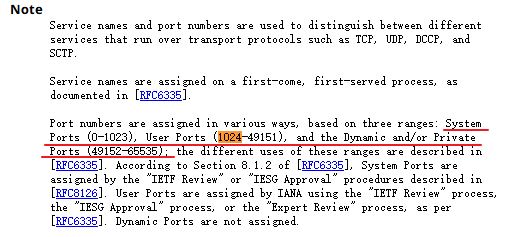可以看到,端口范围被分成了三类