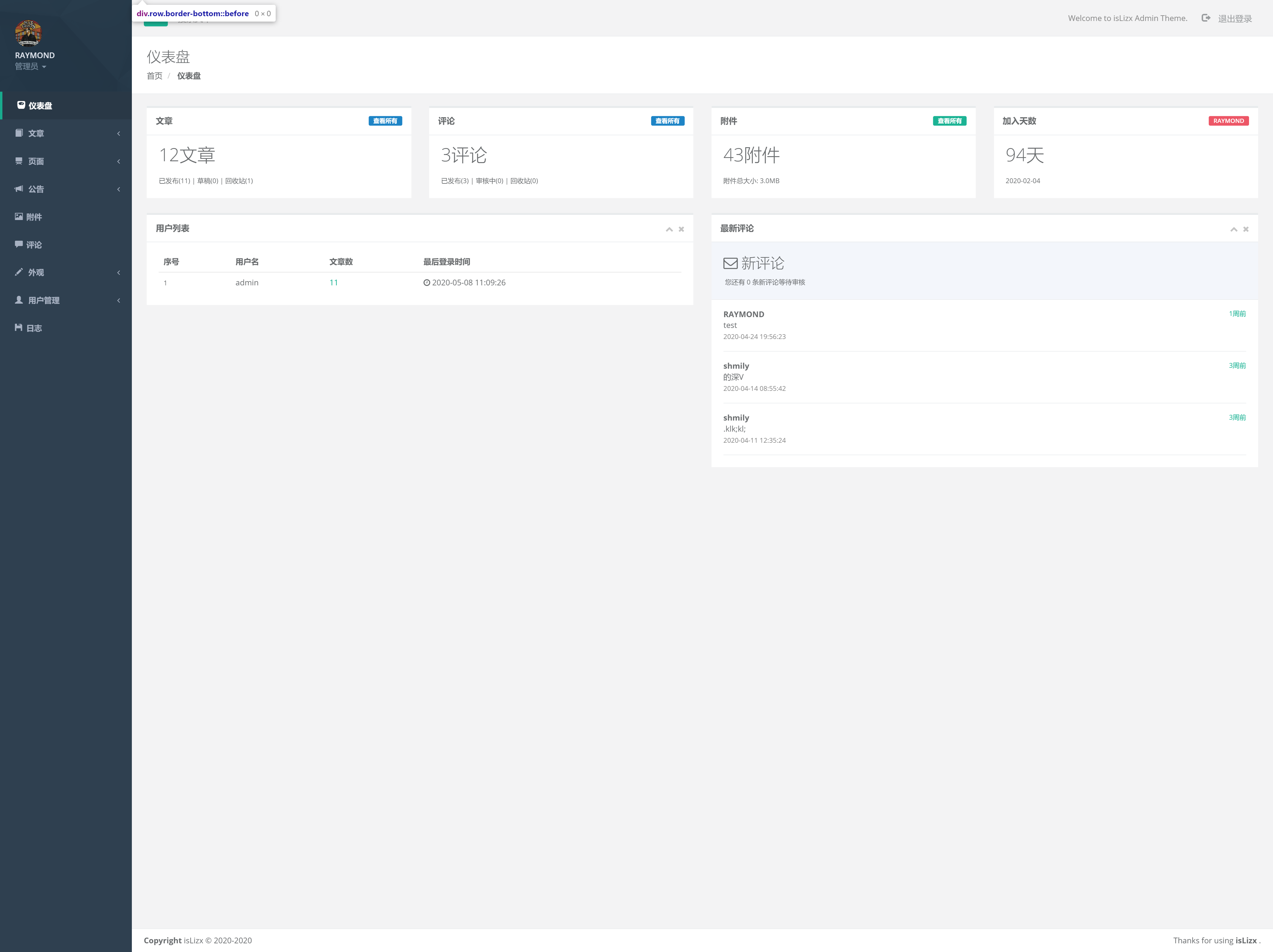 - 前台效果图就不展示了,可前往网站浏览