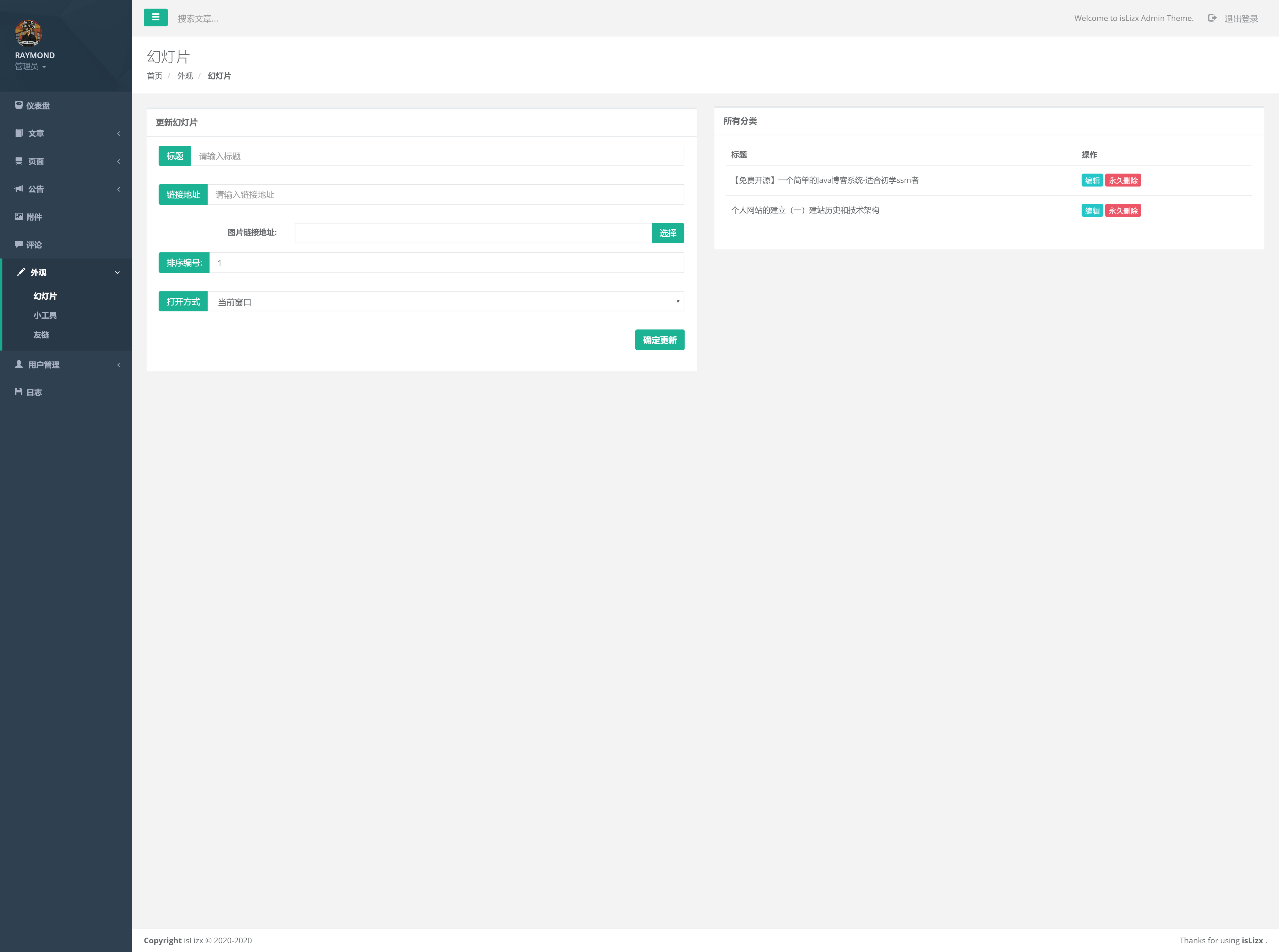 轮播图管理(即首页的轮播图,轮播图可另外链接到其它页面,比如文章或公告)