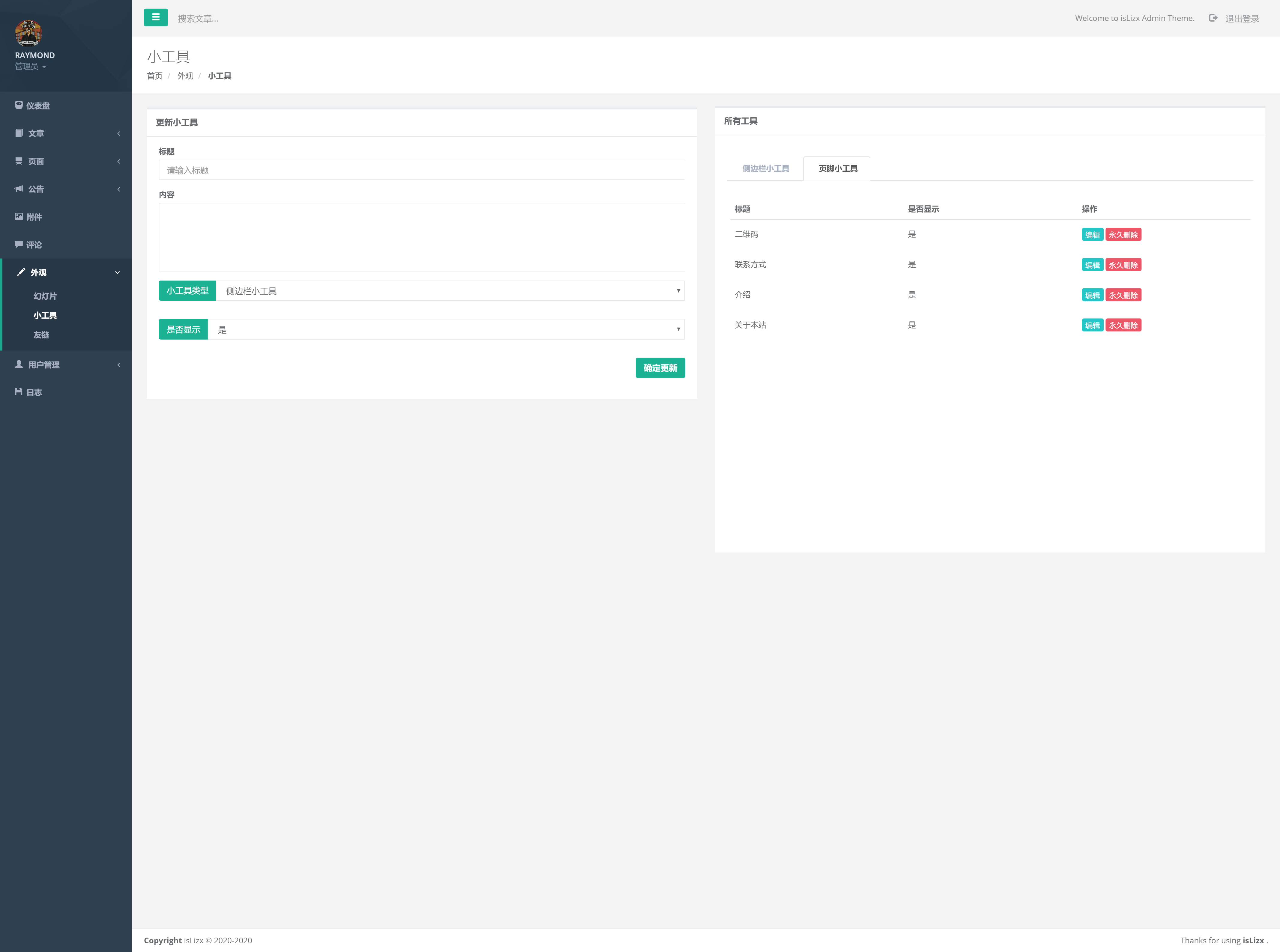 小工具管理(即首页右侧的 bar)
