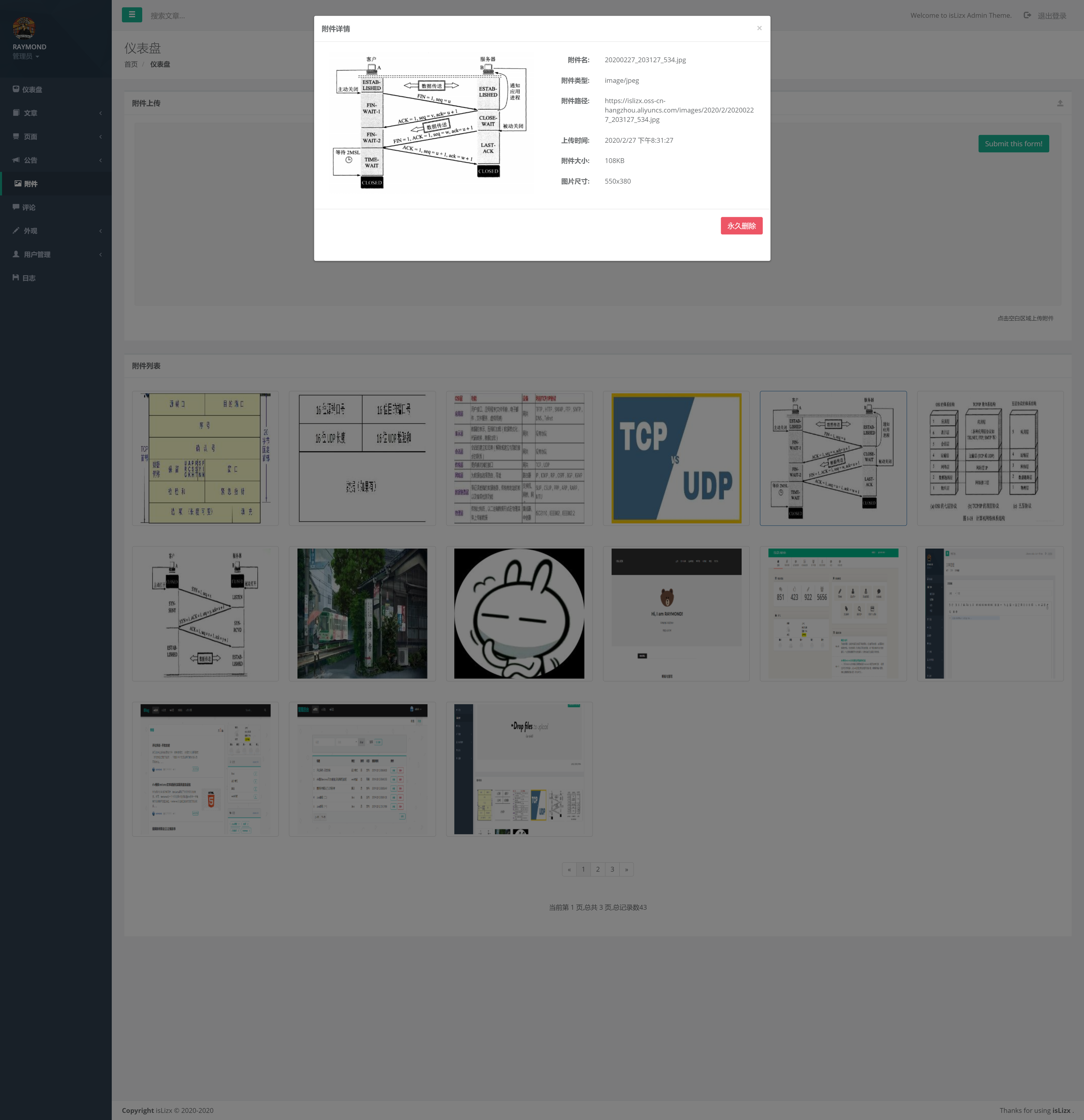 附件管理(点击附件可以查看详细信息以及删除操作)