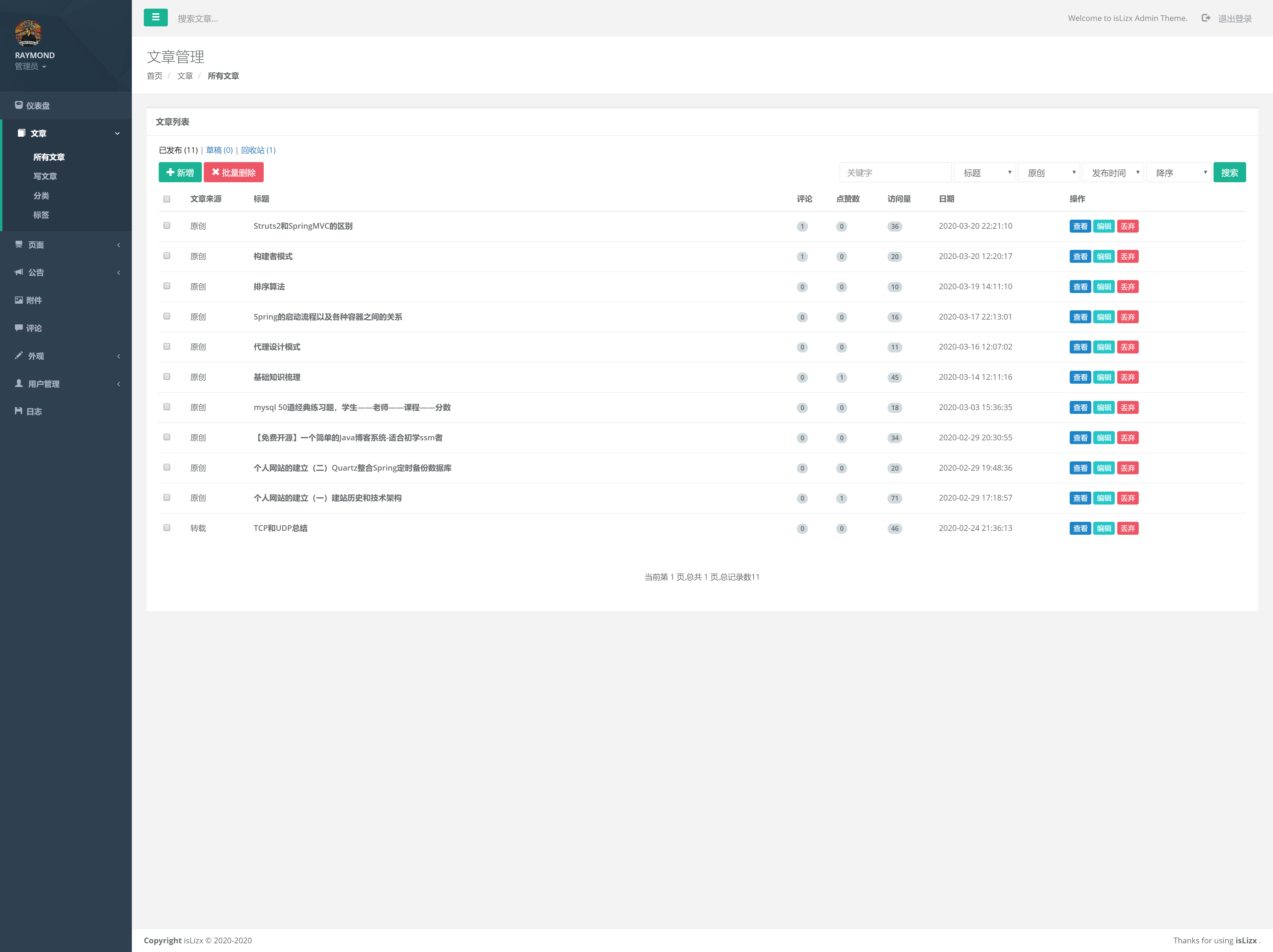基于 SpringMVC+Spring+MyBatis 开发的个人博客网站