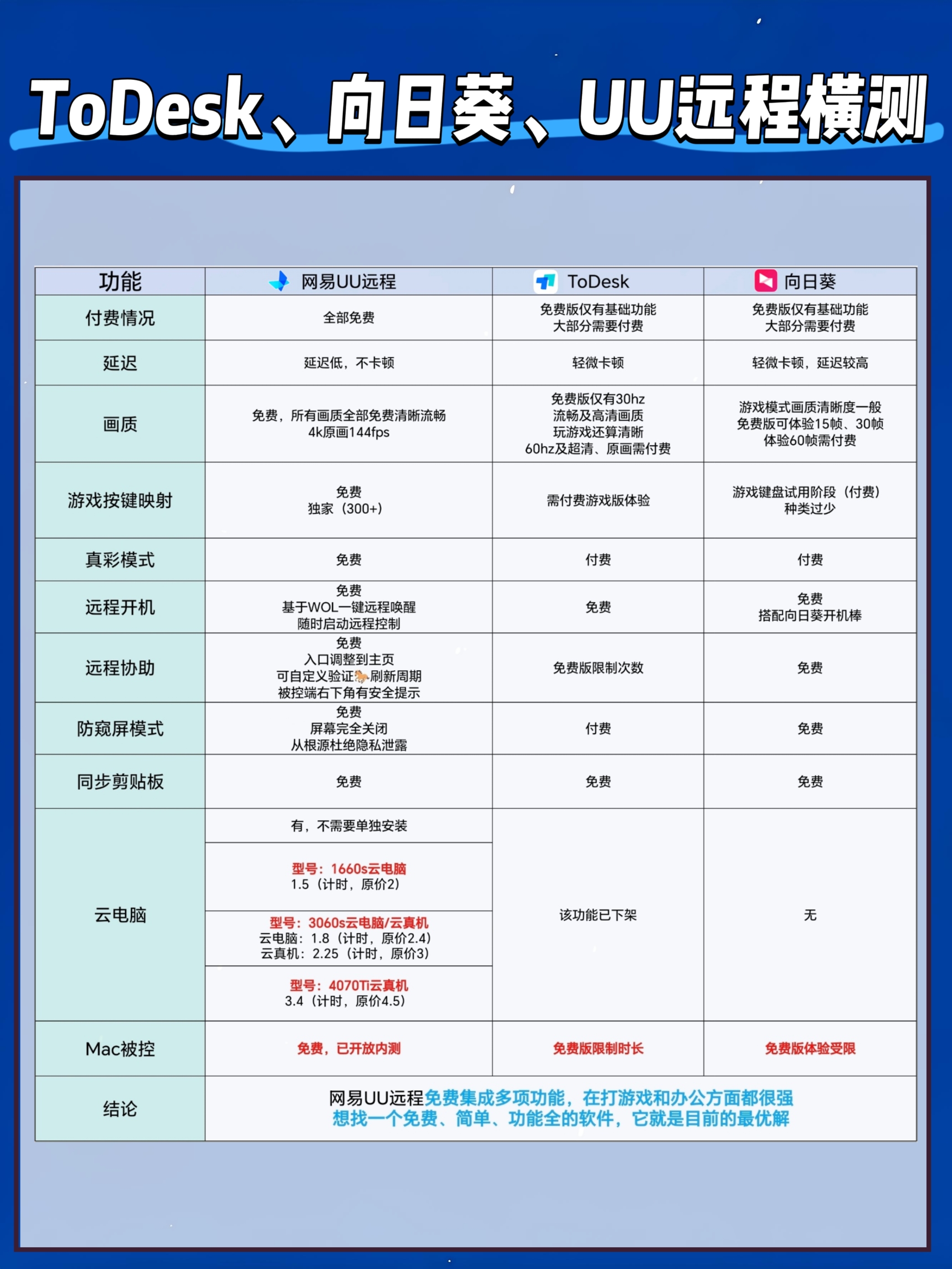 我发现UU远程它免费集成多项功能,在打游戏和办公方面都很强,让大家不用在多软件间切换折腾