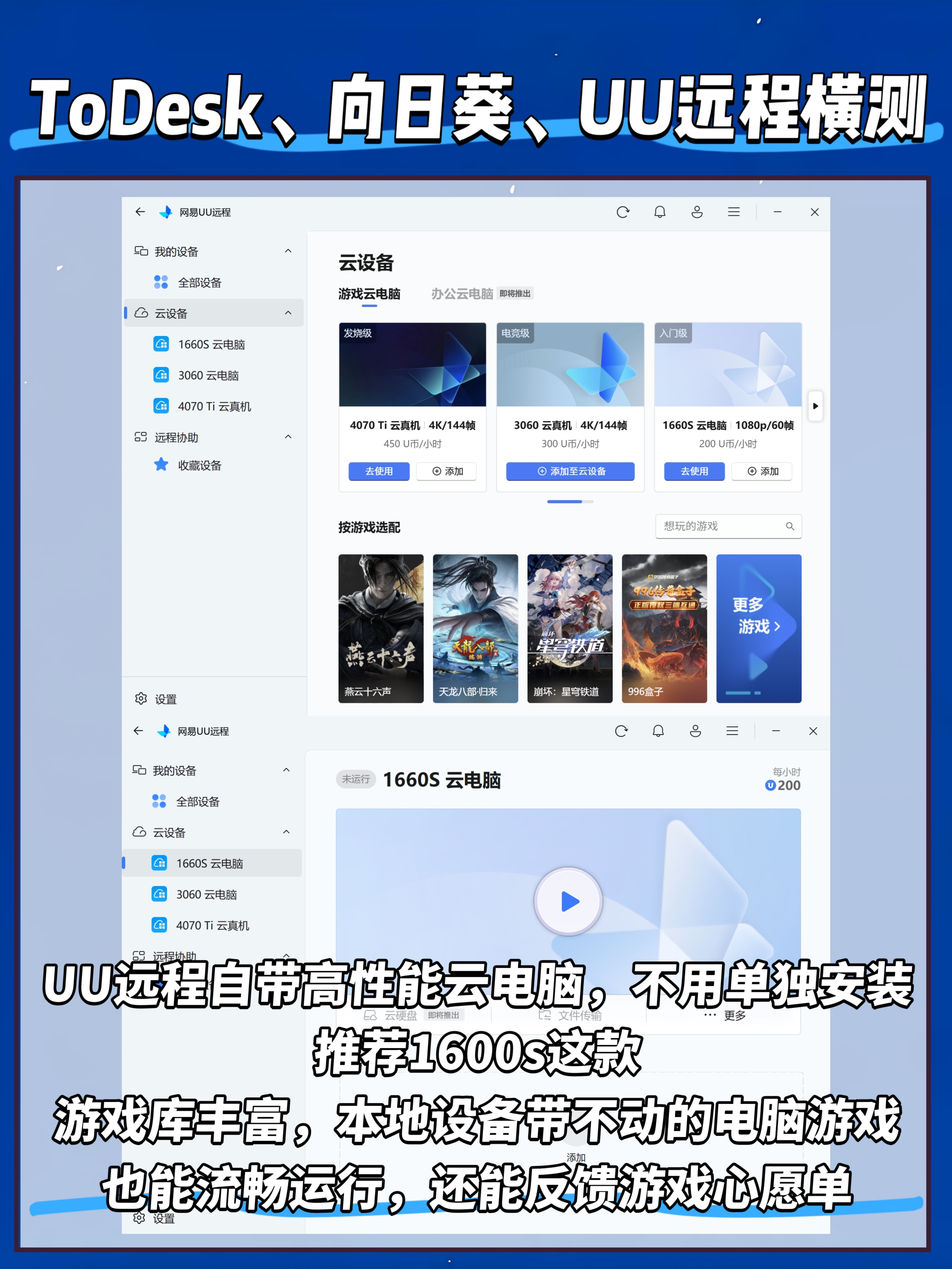 更值得期待的是,UU远程自带高性能云电脑,不用单独安装,推荐1600s这款