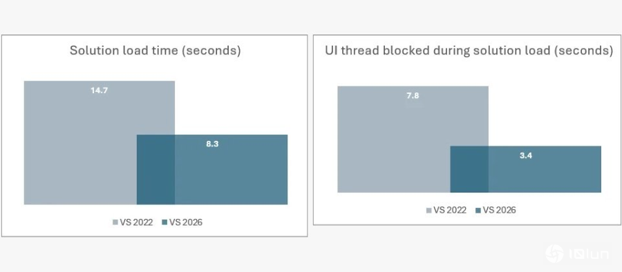 VS 2026针对大型解决方案的加载机制进行深度优化。根据官方测试,界面冻结时间比Visual Studio 2022减少超过一半,打开上百个项目的解决方案也能更快进入可操作状态。整体操作体感更顺畅,即使在企业级项目中,界面仍保持流畅。微软表示,这些改进源自底层架构调整,目的是减少中断与等待,让开发者能更专注于撰写程序代码。