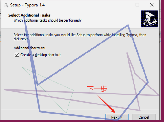 安装程序启动后,即开始安装,勾选代表创建桌面图标,一般默认即可,然后点击"下一步"。