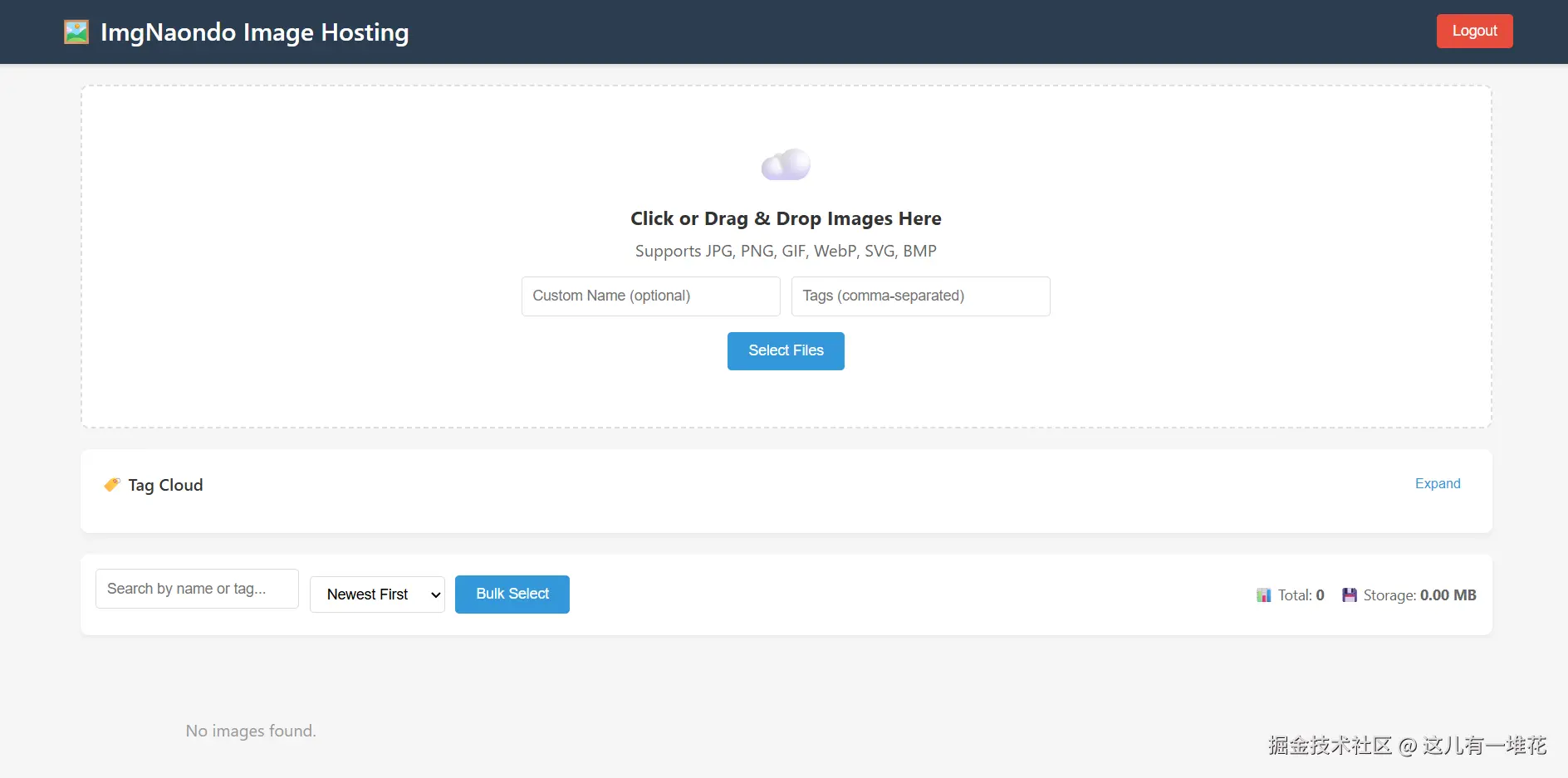 - 最底部则是图片列表(刚搭好时会显示 "No images found.")。