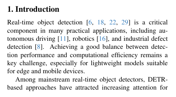 实时目标检测[6, 18, 22, 29]是许多实际应用中的关键组成部分,包括自动驾驶[11]、机器人技术[16]和工业缺陷检测[8]。在检测性能与计算效率之间实现良好*衡仍然是一个关键挑战,特别是对于适用于边缘设备和移动端的轻量级模型而言。