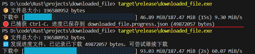 目标:实现一个在 Windows 上可运行的高性能并发下载器,支持多线程分块下载、可视化进度条、平均速度显示、简单的断点续传提示(保存进度信息以便后续手工/自动恢复)、以及优雅中断(Ctrl-C)处理。