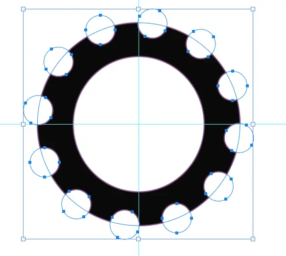 3.多重复制,绘制一个小圆放大圆上。将小圆进行自由变换,将旋转中心定为圆环中心,并进行旋转。退回上一步操作,按快捷键Ctrl+Alt+Shift+T进行重复制。(需要先创建初始变换:Ctrl+Alt+T------Shift+拖拽对象到想要的位置------Enter确认此次变换)