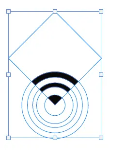 2.绘制一个正方形并旋转45°,将下端一脚对齐圆心。将所有图层合并,选中正方形,设置路径操作为与形状区域相交。
