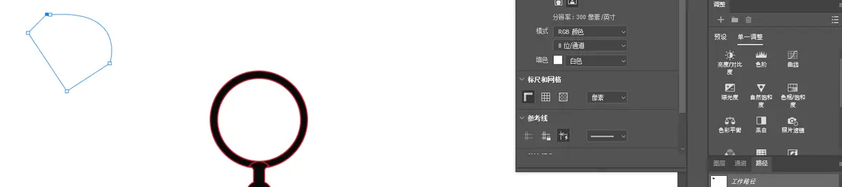 3.删除多余路径:用钢笔工具添加锚点,再使用直接选择工具删除多余的线。用直线工具绘制两条线