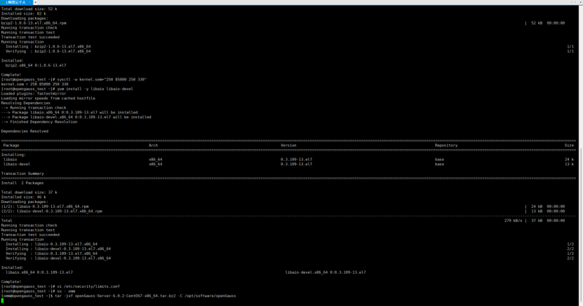 tar -jxf openGauss-Server-6.0.2-CentOS7-x86_64.tar.bz2 -C /opt/software/openGauss