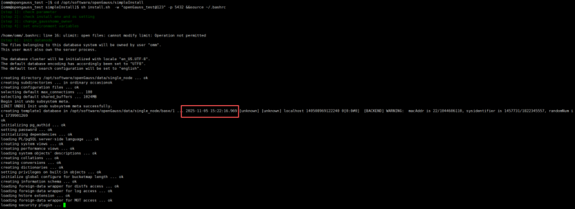 sh install.sh -w "openGauss_test@123" -p 5432 &&source ~/.bashrc