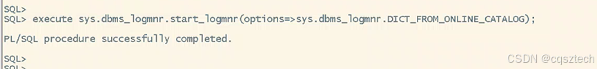 execute sys.dbms_logmnr.start_logmnr(options=>sys.dbms_logmnr.DICT_FROM_ONLINE_CATALOG);