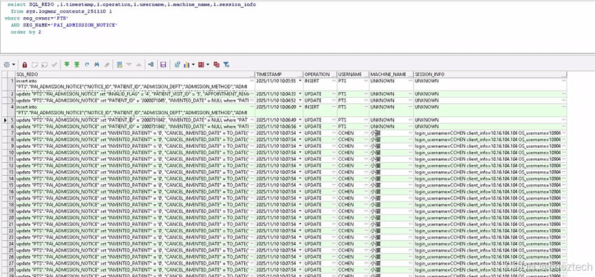 比如我们这里,想找 谁修改了 PTS.PAI_ADMISSION_NOTICE.