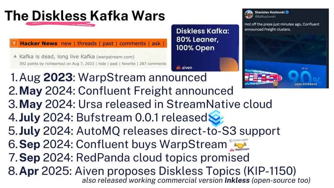 对业界来说不幸的是,真正的价格战始于 2023 年,当时一种新的架构表明,你可以立即将 Kafka 的价格降低10 倍以上。