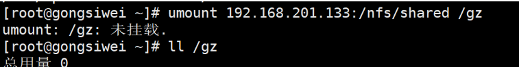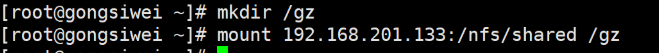 3.创建一个挂载目录 /gz,将 /nfs/shared 文件系统挂载到 /gz 目录(可共享文件路径)