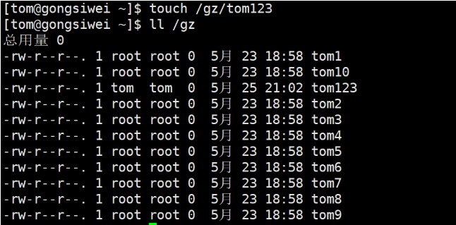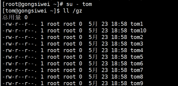 3.切换到tom用户下,并查看读取权限