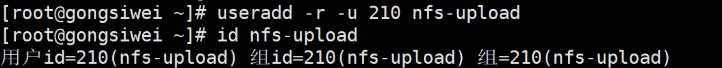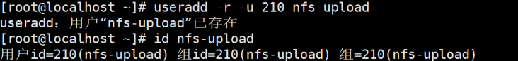 2.创建一个nfs-upload用户 [root@localhost ~]# useradd -r -u 210 nfs-upload