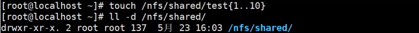 [root@localhost ~]# touch /nfs/shared/test{1..10}