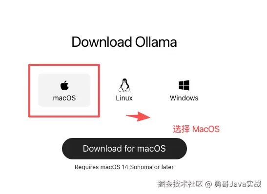 进入 Ollama 官网 ,我的电脑是 Mac Studio ,所以选择 MacOS 下载 。