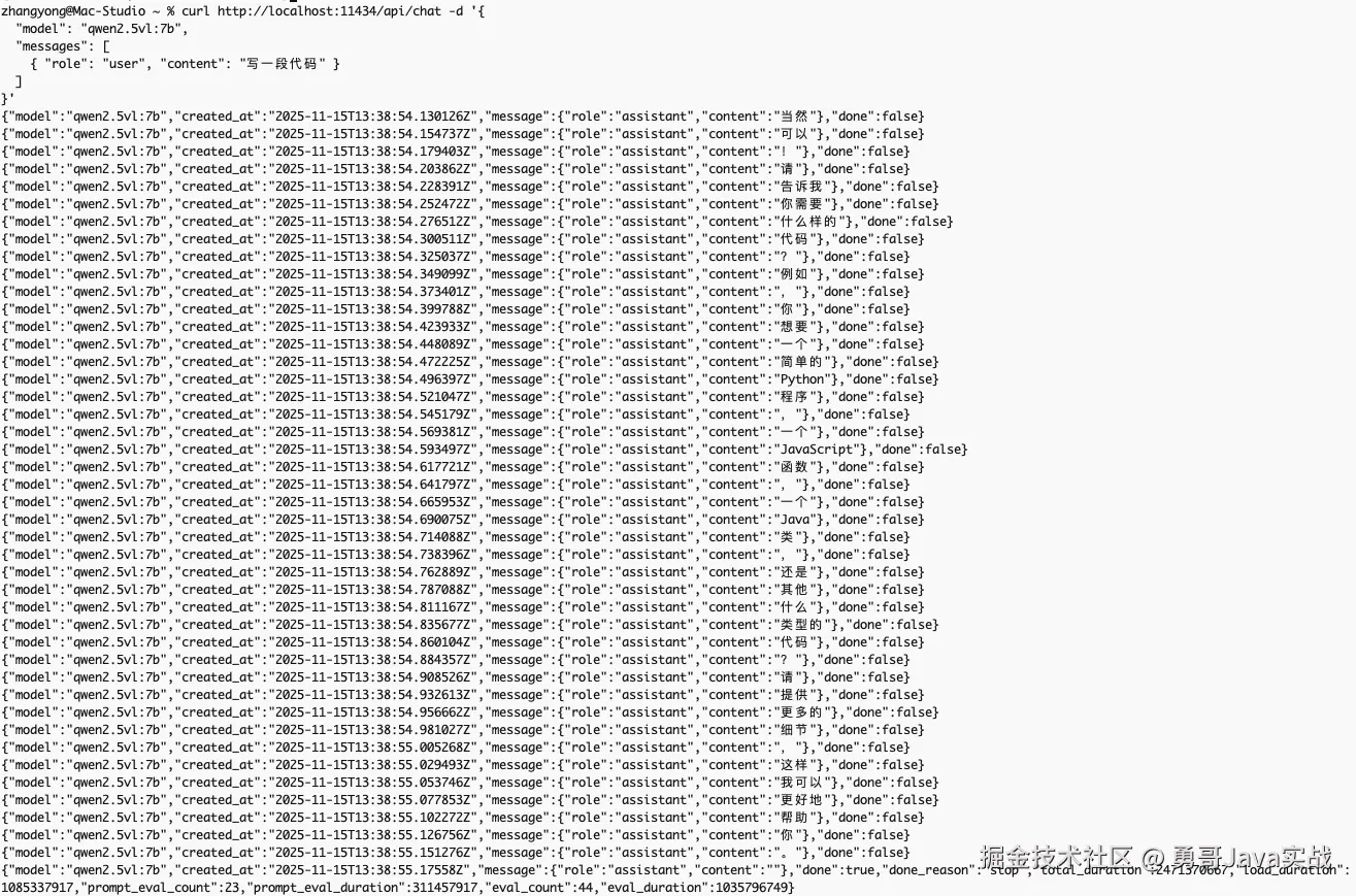 同样,Ollama 也支持兼容 OpenAI 的接口协议 ,可以实现流式对话,见下图: