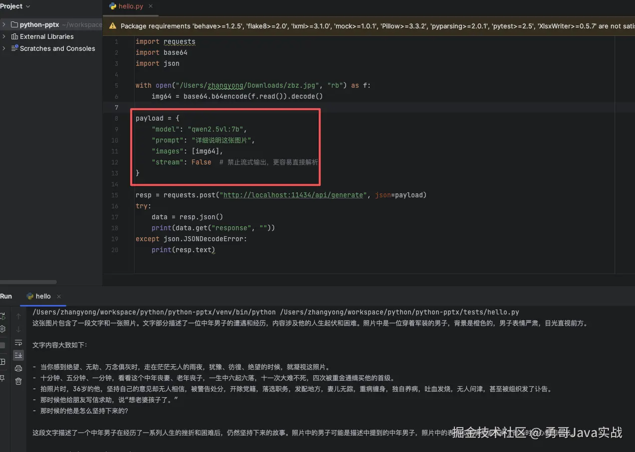 我们也可以编写 python 调用 Ollama 接口,同样是分析图片: